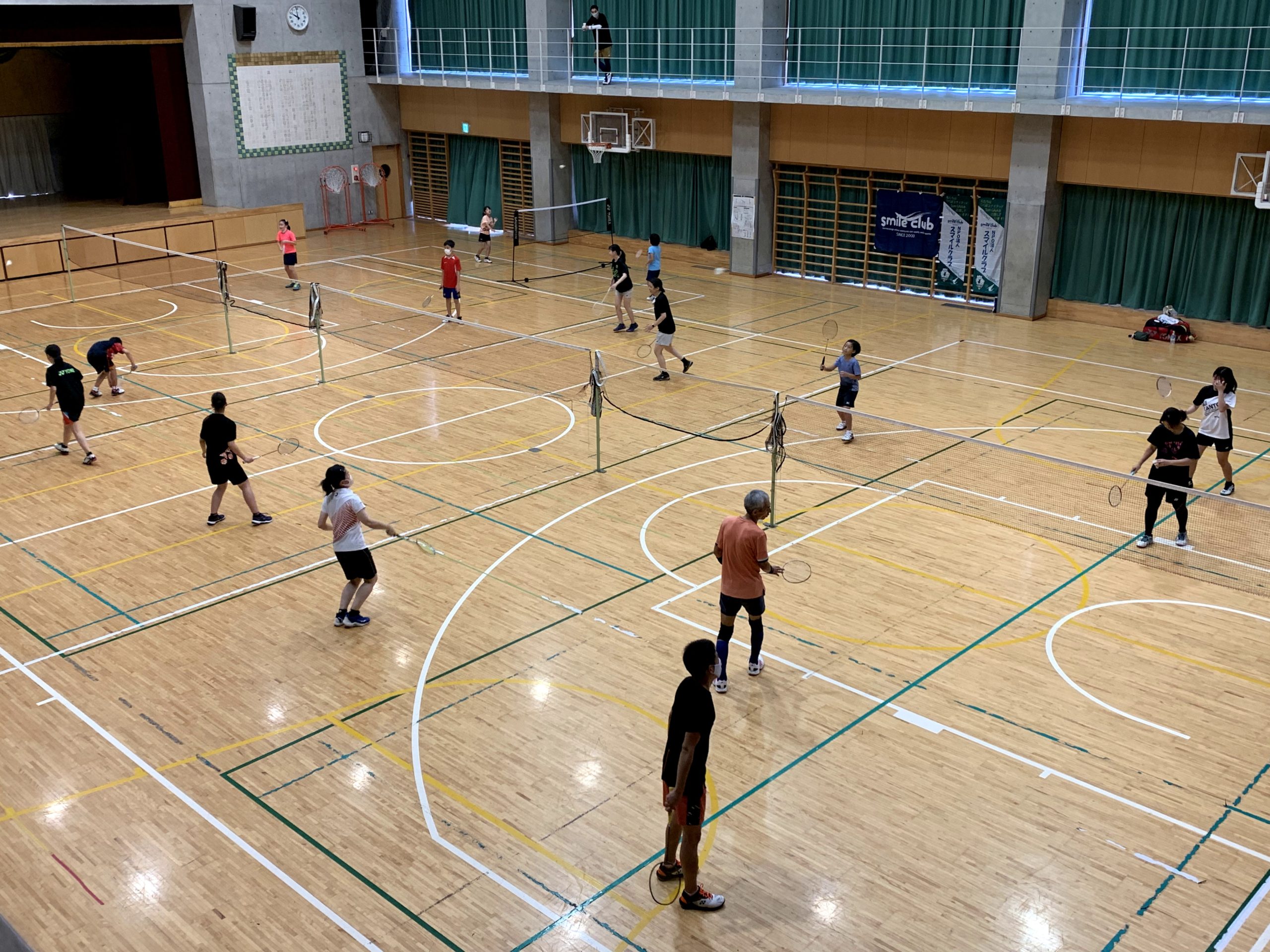 バドミントンの部では、小学生から大人の方までたくさんの方に参加して頂きました。色々な年代の方々とゲームを数多く行い、各コートで熱戦が繰り広げられていました。