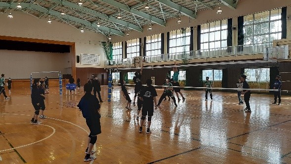 ウォーミングアップからパス、レシーブ、スパイク、サーブなど基本的な練習から、選手も一緒に入ってゲームまでをおこないました。ゲームではラリーが続く場面もかなりあり、盛り上がりました。今回協力いただいた選手は、浜崎勇矢さん、濱田英寿さん、新垣東麻さん、松田康河さんの4名でした。Vリーグも頑張ってください!