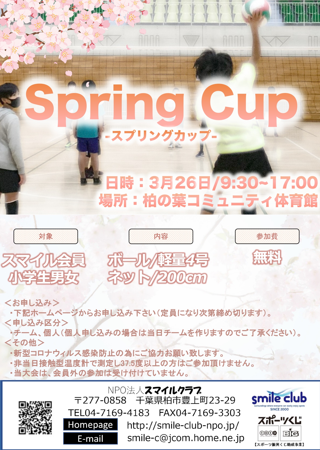 この度スマイルクラブではtoto助成を受けまして、バレーボールスプリングカップを開催いたします!!下記大会詳細をお読みになって参加申し込みフォームからお申し込みください。