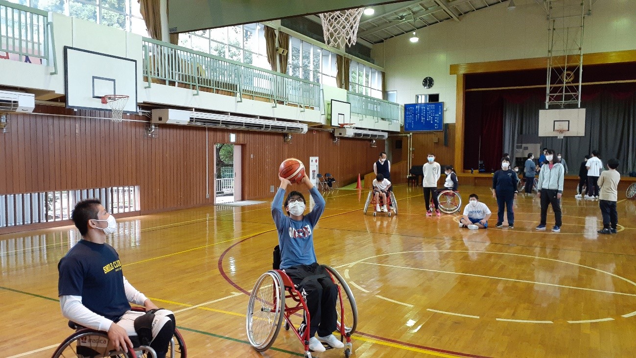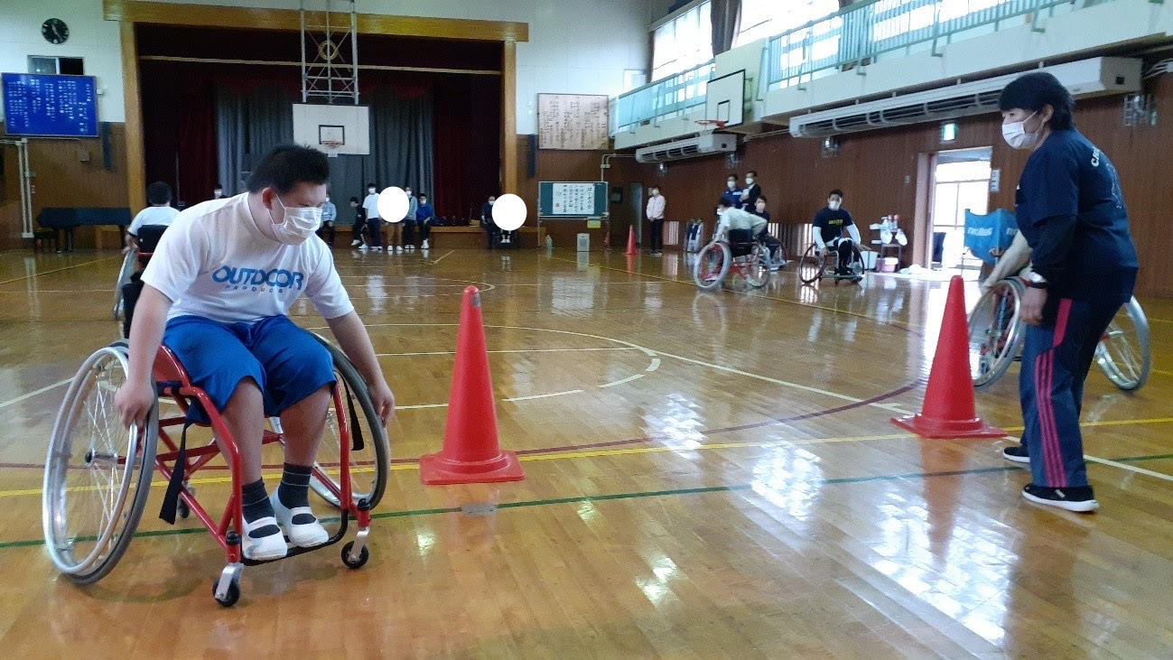 イベント報告NEWS&TOPICS研究・助成金事業等 夷隅特別支援学校での車イス出前授業開催 イベント報告 2022.10.21 2022年10月13日(木)に千葉県立夷隅特別支援学校にて、車いすバスケの出前授業(スポーツ庁委託事業)を開催しました。当日は、千葉ホークスから添田智恵選手(パラリンピック出場)、植木隆人選手(アジアパラ出場)2名に講師として来ていただき、車いすに乗ってのゲームやシュートなどを体験しました。この日を楽しみに待ってくれていた生徒達は、時間が進むとともに車いす操作やシュートも上手になってきました。 車いす操作体験の様子 車イスに乗ってのシュート練習
