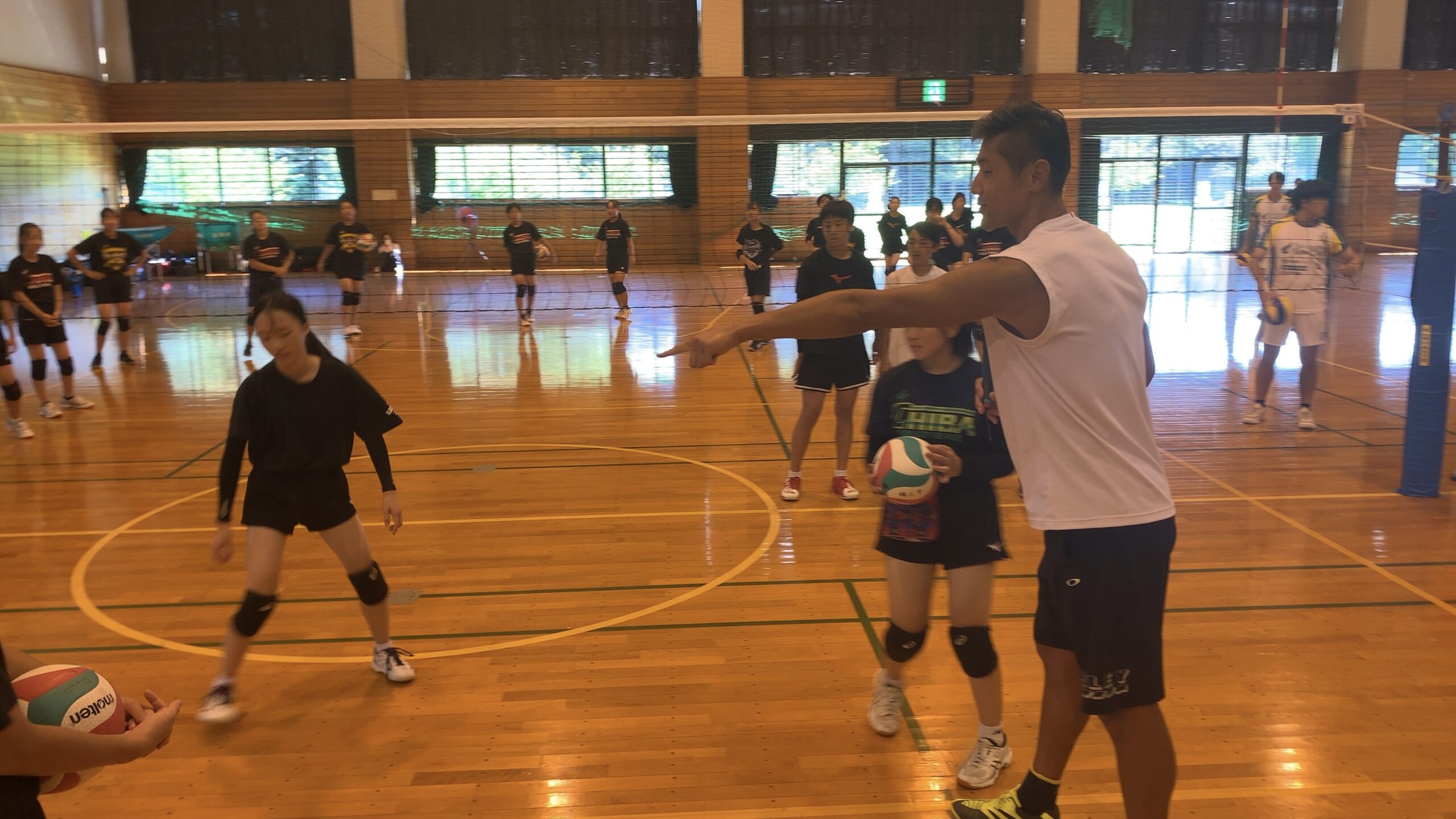 石島さんには小学生、中学生、ママさんとあらゆるカテゴリーにバレーボールの楽しさ、面白さを伝えていたきました。また「挑戦」することの大事さや、プレーの質、技術の指導を細かく教えていただき、とても充実した講習会となりました。最後には石島さんも入っていただいてゲームを行い、会場は大いに盛り上がりました!