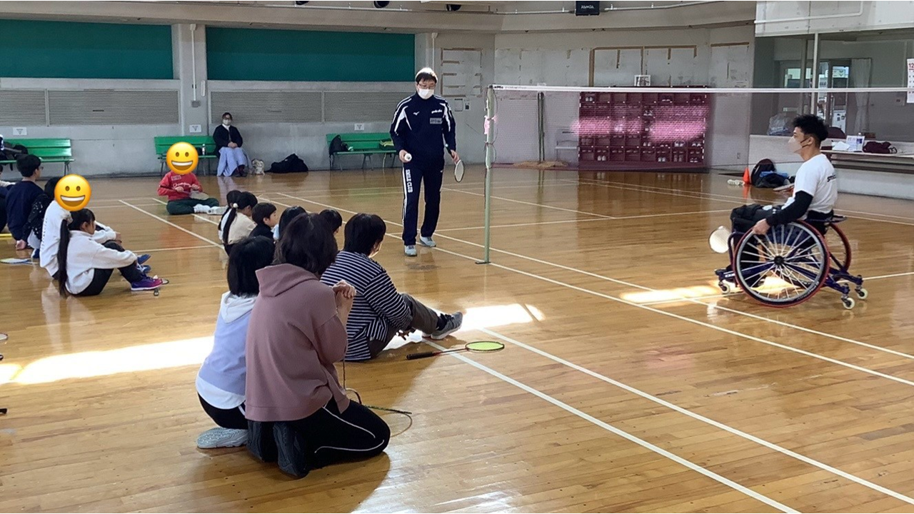 また25日(水)のイベントには、パラバドミントン元日本代表の大濱真選手が来てくてさり、エキシビジョンでは大濱真選手のプレーに大きな歓声が上がりました。