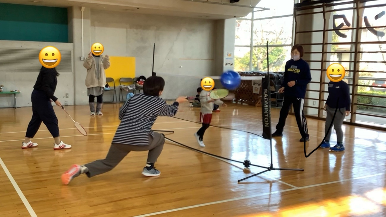 - バドミントンの基本の動き方の練習の様子