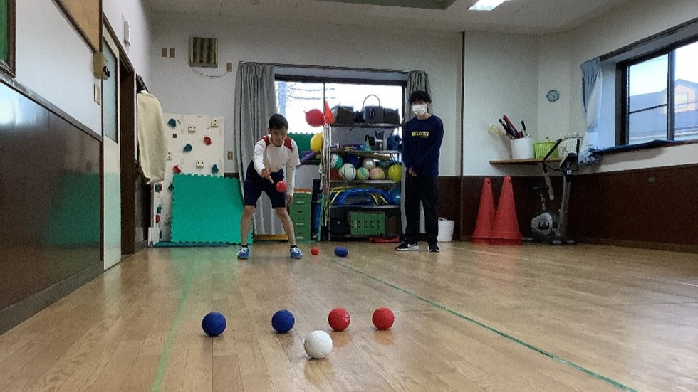 運動種目では、今月は同時指導のお友達と一緒にボッチャに取り組みました。1球1球丁寧に狙って投げることができていて、転がすだけではなく少し浮かしたボールを投げるなどの投げ方の使い分けができるようになりました。毎月の最後の回は、本人の好きな卓球で楽しんで終わるようにしています。