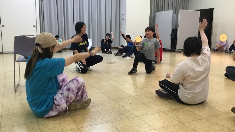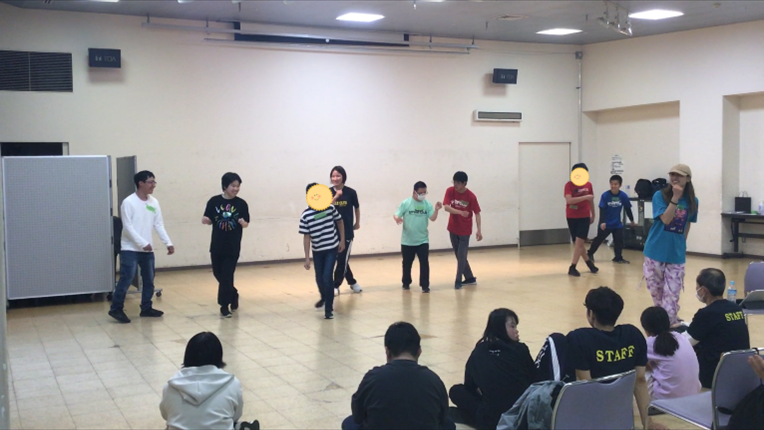 最後にグループに分かれて発表会を行い、見ている人は「頑張れ〜」と声をかけ、それに応えるかのように発表する人たちは体を大きく動かしてかっこよく踊っていました。