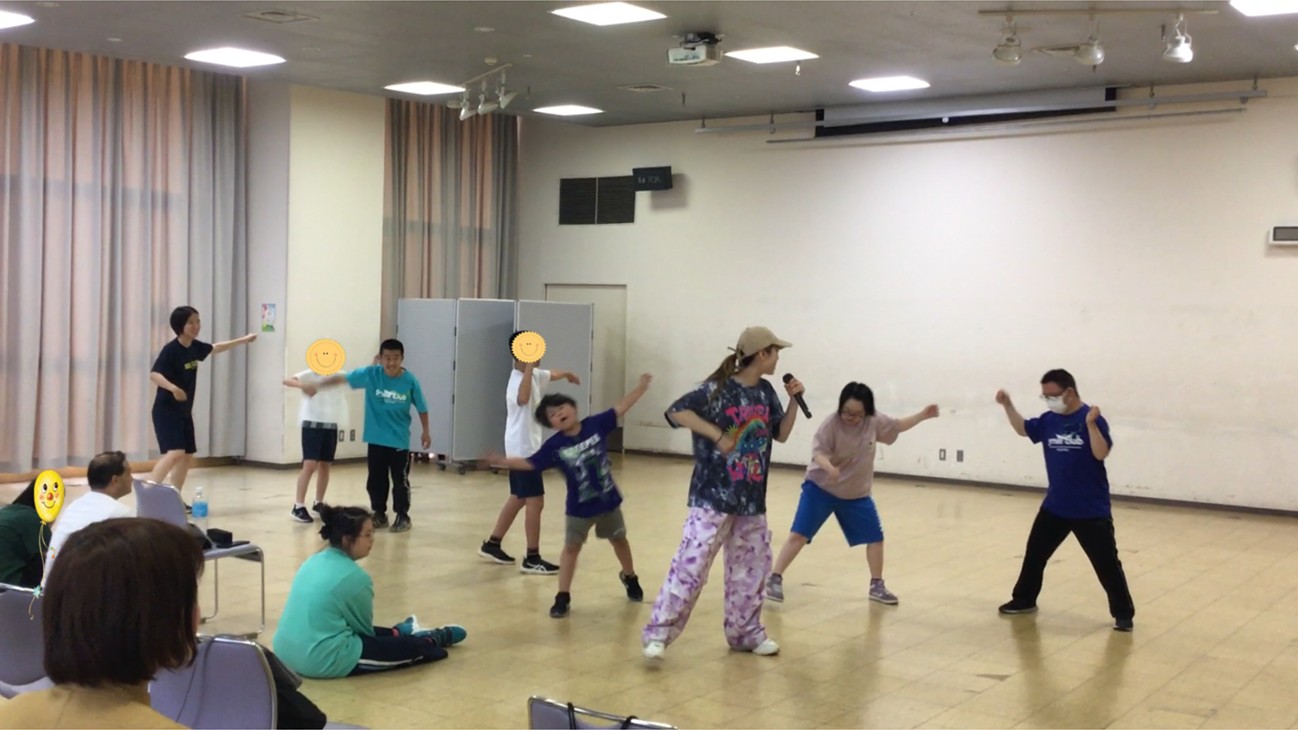 スマイルクラブの児童支援及び放課後等デイサービスでは、6月5日(木)にふれあい22(松戸市健康福祉会館)にてダンスイベントを開催しました。講師にはスマイルダンス教室専属講師の仲村小夏先生をお迎えして、前回と同じくMrs. GREEN APPLEの「familie」という曲で踊りました。