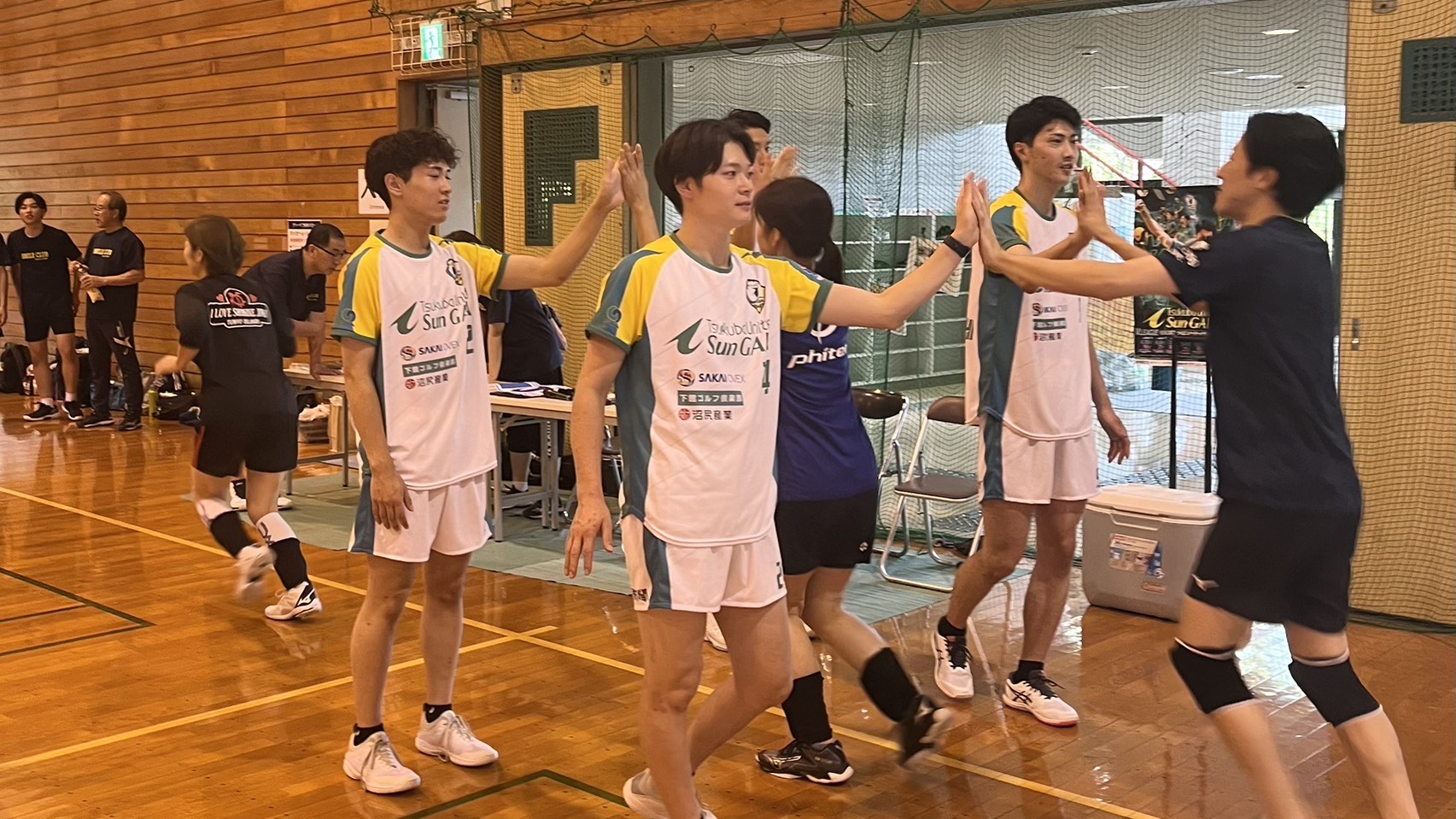 さらに、Vリーグ・つくばユナイテッドSunGAIAから、#26武藤茂選手(主将:OH)・#9松林哲選手平(MB)・#12松浦友喜選手(L)・#24浅野翼選手(S)の4人の選手にもアシスタントとしてご参加いただきました。