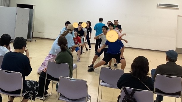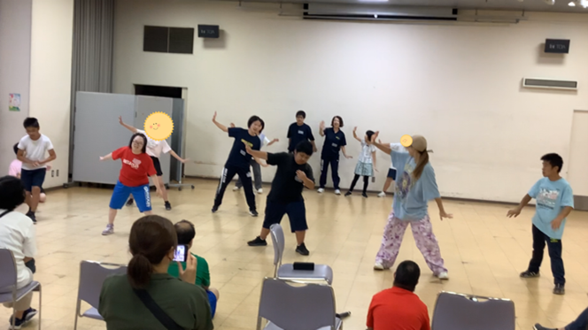 先月に引き続き今月も「はいよろこんで」(歌:こっちのけんと)という曲で踊りました。今回は曲の最後まで振り付けを行い、最後は発表会を行いました。前回の復習をしながら行ったので、イベントに久しぶりに来てくださった方も、毎回来てくださっている方も安心して取り組むことができました。発表会の際には仲間を応援する声も聞こえて、とても盛り上がりました!