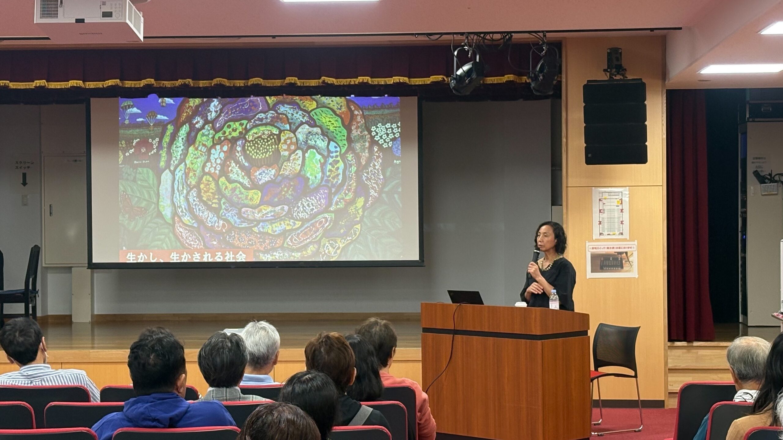 スマイルクラブでは、帝京大学(アフリカ・ヘルシーホスピタル・プロジェクト)等共催、柏市社会福祉協議会、柏市および柏市教育委員会等後援のもと、2025年10月13日(祝月)に公文和子先生をラコルタ柏(柏市教育福祉会館)にお迎えし、講演会を開催しました。