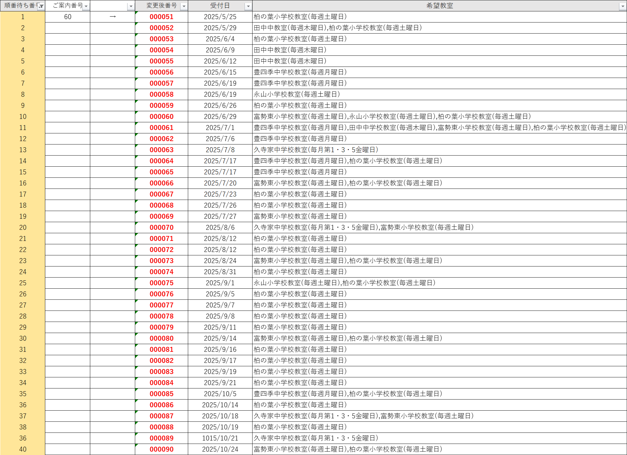 小学生バレーボール教室会員キャンセル待ち状況について(10月26日現在)