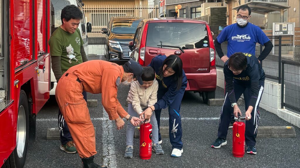 スマイルクラブでは、12月1日(月)にスマイル柏にて、柏東部消防署の方にお越しいただき防災訓練を実施しました。