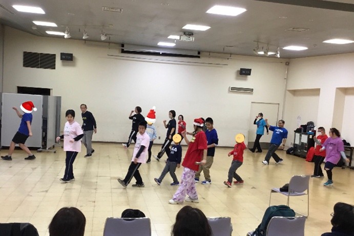 今回は12月ということで、今年最後のダンスイベントでした。小夏先生がサンタの衣装を着てクリスマス気分を盛り上げてくれました。1曲目はマライア・キャリーの「All I Want For Christmas Is You」に合わせて踊り、みんなノリノリでした。