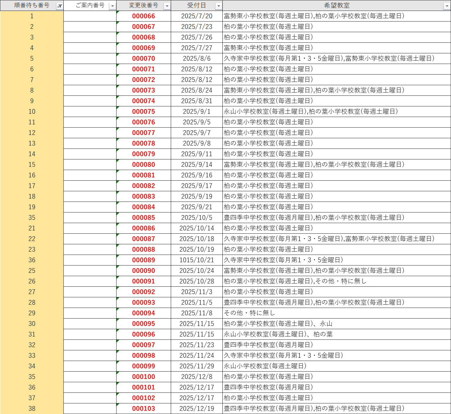 キャンセル待ちの状況につきましてはこちらのリストからご確認ください。(12月27日現在)