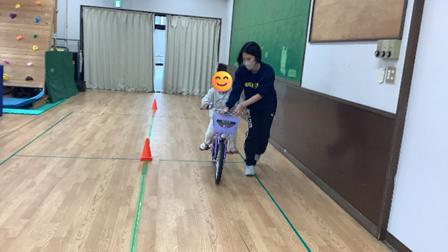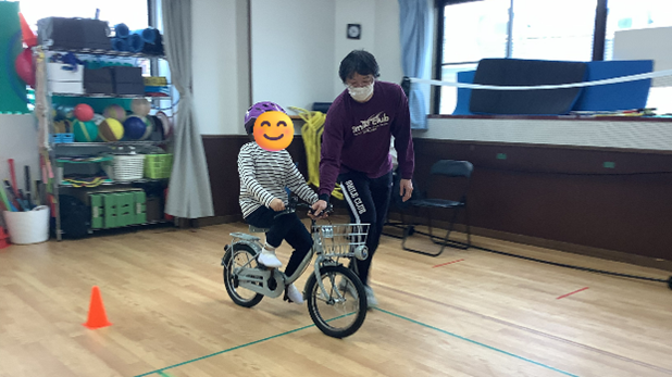 当日はあいにくの雨で室内での開催となりましたが、希望していた方全員がご参加くださり、みんなで自転車に乗ることを楽しむことができました。