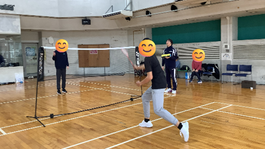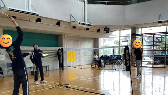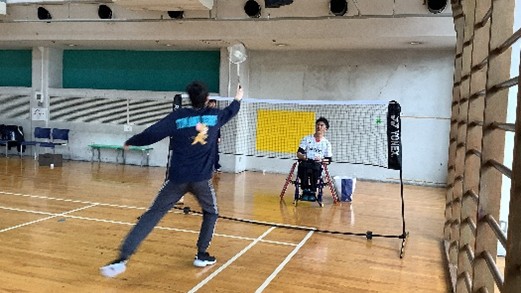 また今回のイベントでは、車いすバドミントン元日本代表でスマイルクラブスタッフの大浜真さんがスペシャルゲストとして来ていただきました。一緒に練習や試合をしていただき、参加者の方々とバドミントンを楽しんでいました。