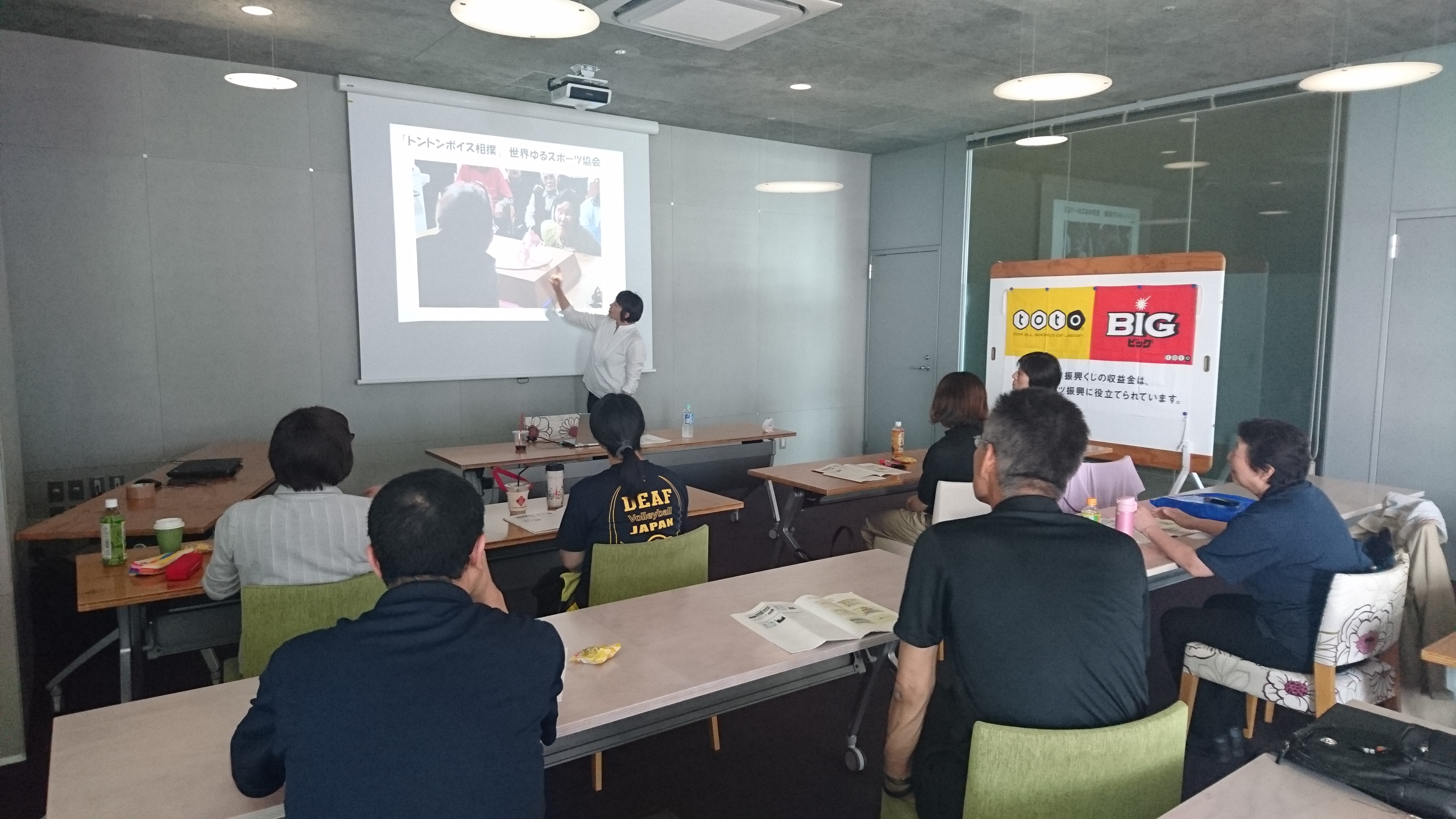 運動が苦手な子の教室チャレンジスポーツ教室 toto助成 スポーツカレッジ「障がい者スポーツ」シリーズ開催! 運動が苦手な子の教室午後の部 障がい者スポーツ指導法 2018.06.26 6月24日(日)は、障がい者スポーツについてのテーマで午前は、順天堂大学 渡邊貴裕先生、午後は日本福祉大学 安藤佳代子先生にお話しいただきました。 特に渡邉先生のお話では、イギリスなど海外の情報についてお話いただきました。また安藤先生の講義では、簡易フライングディスク体験など、実技も含めた有意義なものとなりました。ありがとうございました。 午前の部 日本及び海外の障がい者スポーツ事情 午後の部 障がい者スポーツ指導法