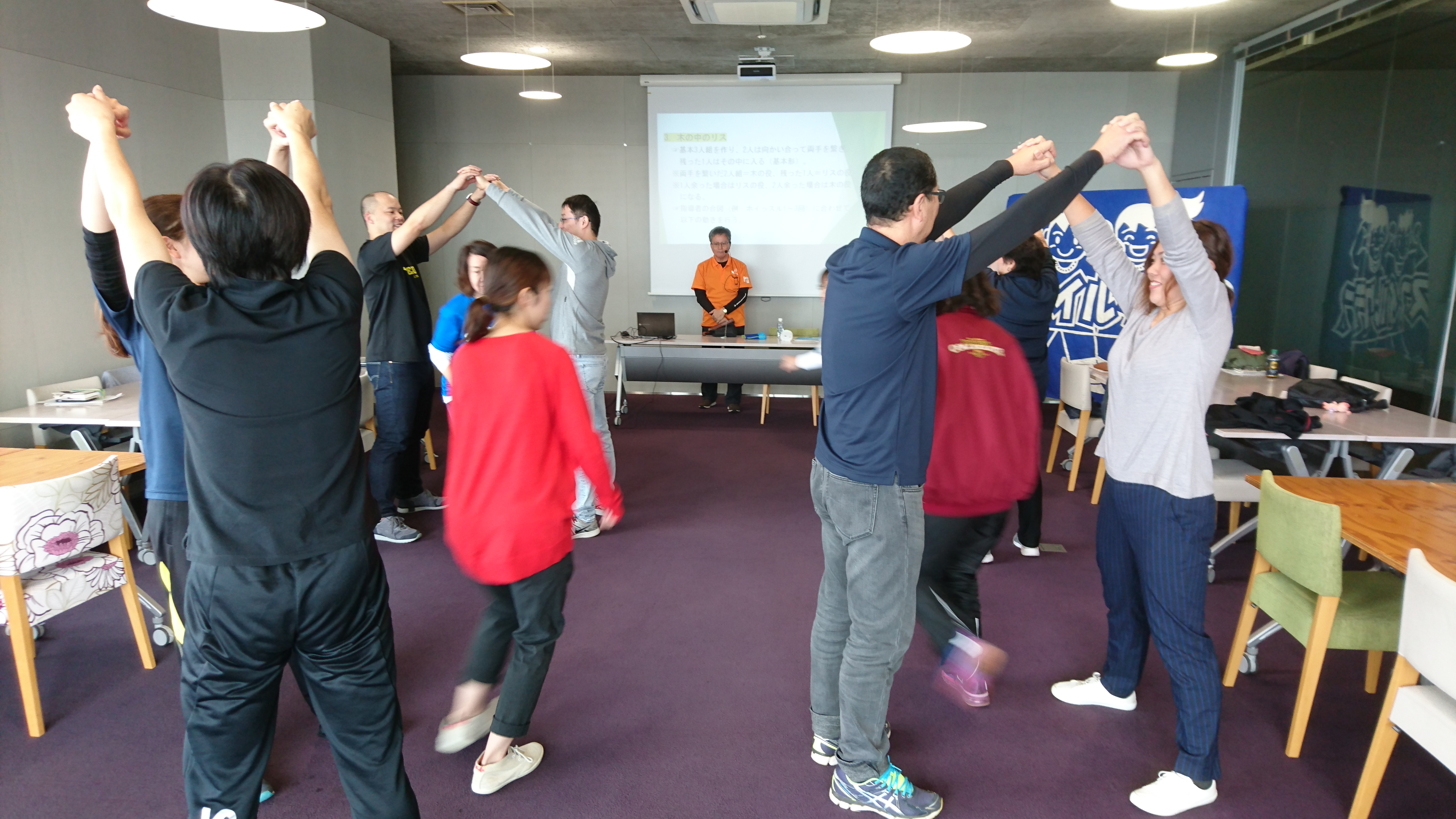 後半は実技を通して、静的&動的姿勢制御のトレーニングや頭と体を使ったみんなで盛り上がれるゲーム、そして音楽に合わせてダンスなどを教えていただきました。