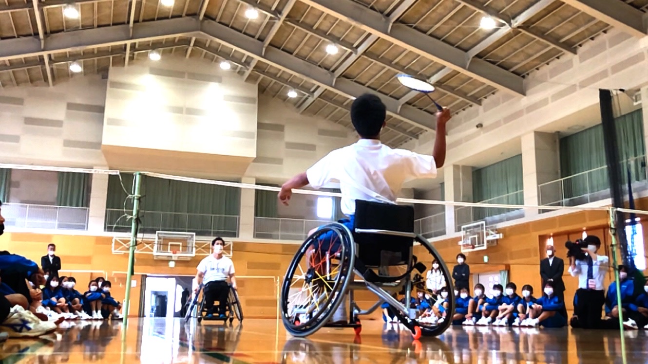 イベント報告スマイルパラアスリートNEWS&TOPICS研究・助成金事業等 10月29日(木)山口県阿知須中学校パラバドミントン出前授業(WAM助成)開催! イベント報告 2020.10.30 阿知須中学校にて、出前授業を行いました。講師はスマイルクラブ所属大浜 真選手! 授業では、車椅子でリレー競走等を通して操作方法を学んだ後、パラバドミントンの体験が行われ、車椅子を動かしながらのラリーに苦戦しながらも、楽しく取り組んでいました。 生徒と大浜選手との試合も行われ、打ち合いが続く試合もあり、会場全体が熱気に包まれました! 授業後、大浜選手には大きな拍手が送られ、盛況の内に幕を閉じました!